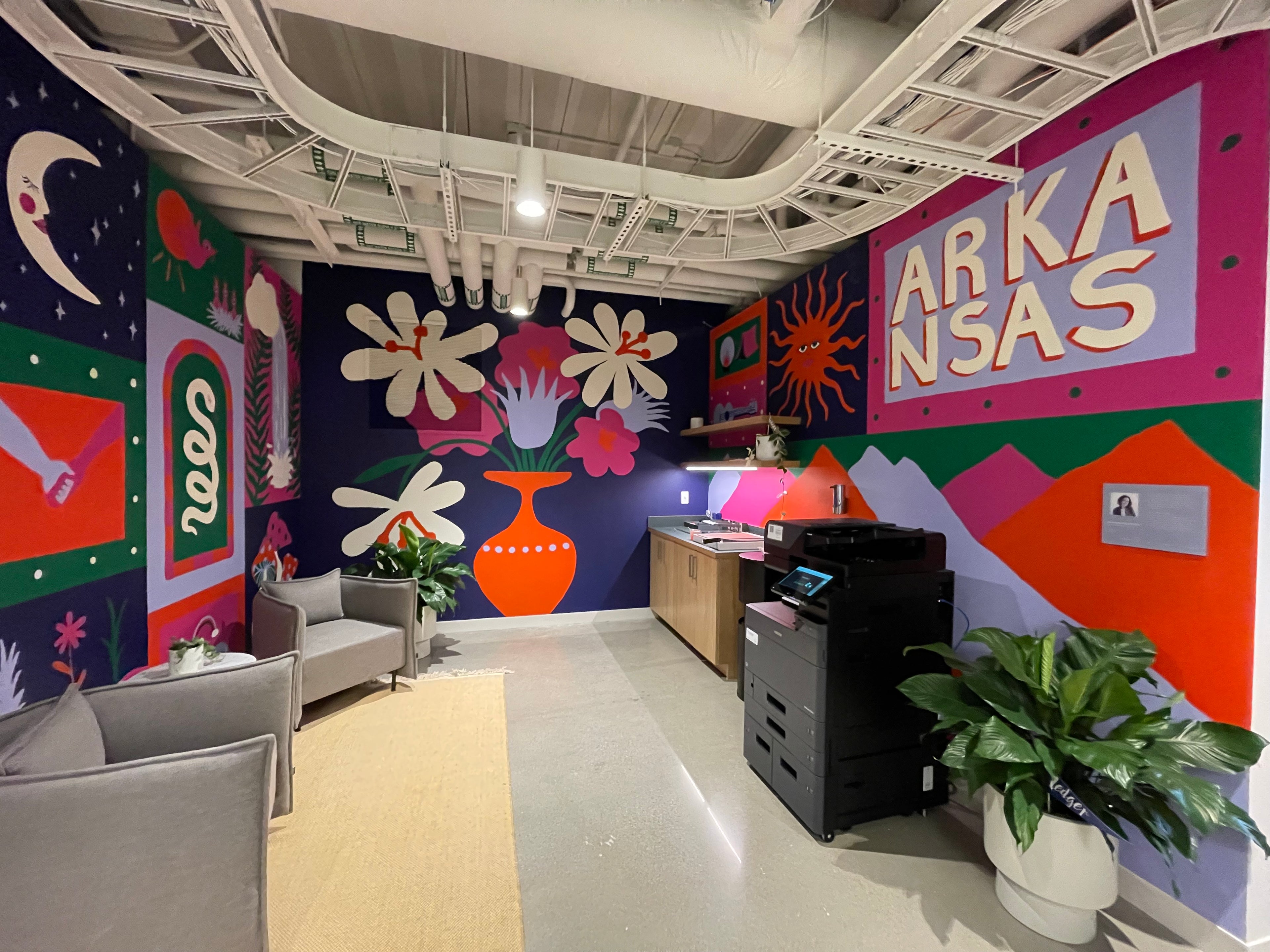 I was asked to create an Arkansas themed mural for them. I worked with the curator for theme and the interior design team for color palette.