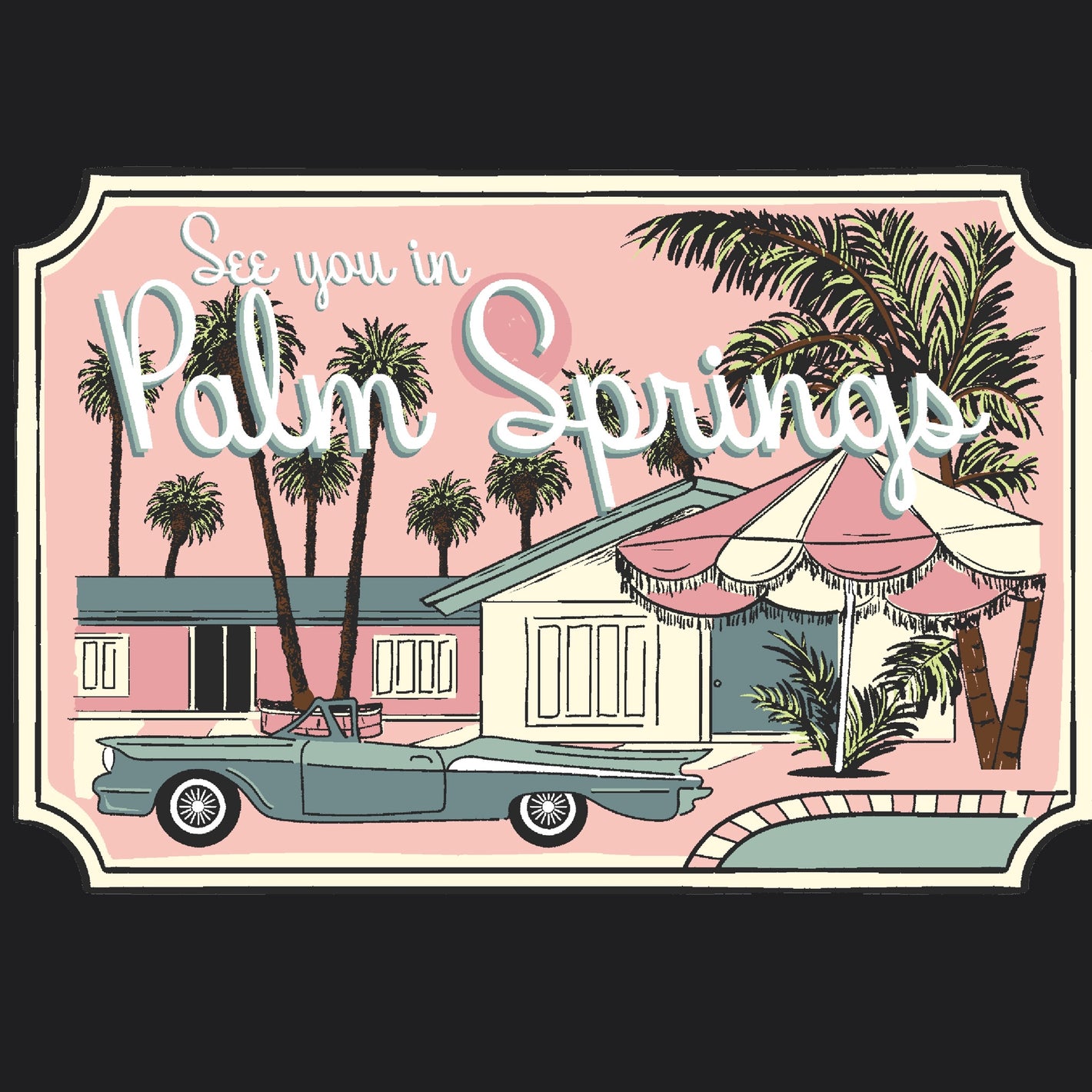 Illustrator drawing. Words to be embroidered on final product.