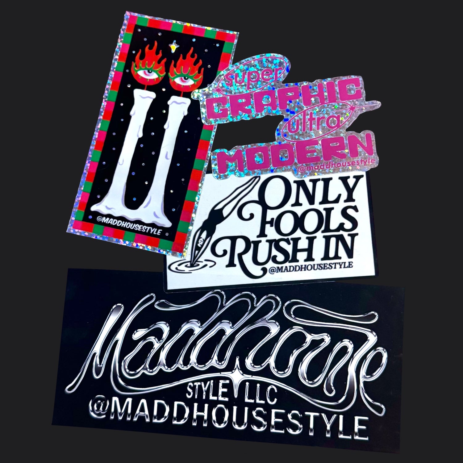 As a creative business owner, I’ve curated & designed every element of the brand- including this website and our logo. The MADDHOUSE logo was hand drawn then chromed out in Photoshop. Process video below.