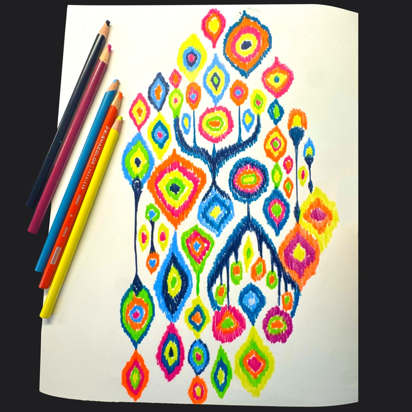 Ikat hand-drawn with colored pencils