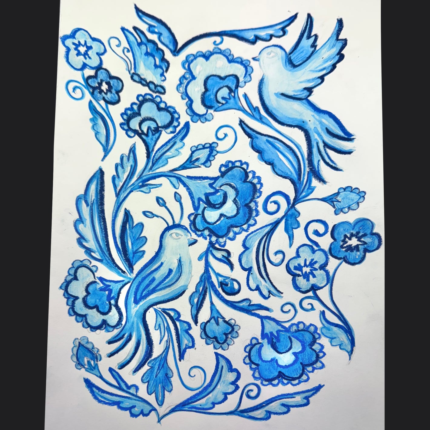 original watercolor painting/oil pastels