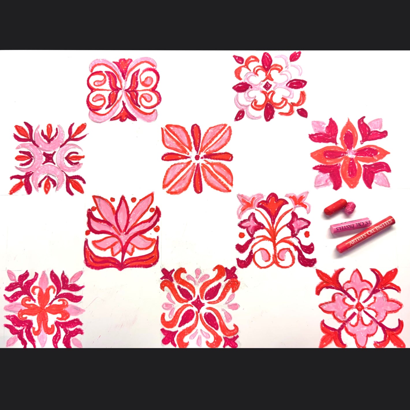 tiles hand-drawn with oil pastels